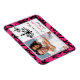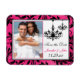 Denna moderna och trendig fuchsia-rosa, svartvita och vita pHOTO spara datum magneter har en rosa och svart, blomstrande, snurrande och scrolls mönster-bakgrund som matchar den bröllopsinbjudning som visas nedan. Texten är anpassade. Om du behöver ytterligare matchande objekt, eller om du vill ha den här designen i en annan kombination av färg, kan du skicka e-post till niteowlstudio@gmail.com med din begäran.