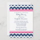 Personlig barnduschinbjudningar i elegant och modernt ljus shock rosa, mörk marin blå och vit roligt chevron zigzags mönster. Anpassade med din text, kontakta oss för att begära en ändring av färg.