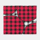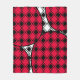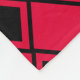 Denna medelmåttiga filt har en modern design av fasta svarta diamanter inuti svarta diamantkonturer med rosa blobs under dem, allt på en vit fält.