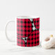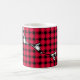 Mugg har en modern utformning av solida svarta diamanter inuti svarta diamantkonturer med rosa blobs under dem, allt på en vit fält.
