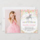 Rosa blom- födelsedag för silverregnbågeUnicorn Inbjudningar