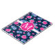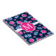 Kvinnligt och chic rosa- & blåa blommormönster med anpassademonogramen.
