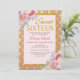 Rosa blom- sweet sixteenfödelsedag för guld- inbjudningar