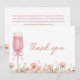 Uttryck ditt hjärtliga tack med vårt bröllopsdusch-kort "Pink Bow Petals & Prosecco Blush" med tackmeddelande. Med en mjuk rosa design, eleganta blomdetaljer och ett delikat rosa band ger detta kort en touch av sofistikering till dina tackmeddelanden. Perfekt för att visa uppskattning för dina gäster, erbjuder det gott om utrymme för ett personligt meddelande. Designat för att matcha din prosecco-inspirerade fest, är detta kort ett vackert och genomtänkt sätt att tacka nära och kära för att de gjorde din dag speciell.