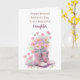 Rosa rustika stövlar och blommor Glad sen mors dag-kort till henne, som du enkelt kan anpassa för mottagaren om det är din mamma, dotter, syster osv.