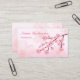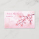 Vacker visitkortdesign i rosa färg med en körsbärsblommande / sakura trädgren med rosa blommor. Anpassningsbara textområden för namn och yrke på framsidan och på baksidan finns utrymme för adressinformation, telefonnummer, e-post och webbadress.