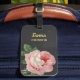 Lägg till ditt namn på den här rosa blomman och grönten löv på gråttets mönster-bakgrundsdesign.