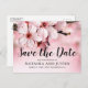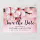 Elegant vår sparar vykortet med vackra blommor av rosa blommar och en bröllop spara datum-mall som är enkel att anpassa.