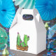 Tre söta kakti med rosa blommor i små terra cotta pots - en roligt söderut western design! Lägg till text eller ändra spännande text.