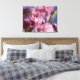 Canvas väggkonst skrivs ut med ett makrofoto av Rosa Blommar Japanska Cherry Blommar Träd. Grenar av täckta med lush-knoppar och blommor i mjuk rosa med en ljus blå himmel-genomsökning.