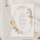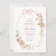 Baby Shower-inbjudan med en ram av vattenfärgsblommor med rosett band och rosa. Anpassa med din information så att mamma blir det. Klicka på "klicka för att anpassa ytterligare" om du vill ändra teckensnittet stil, storlek eller färg.