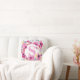 Rosa Blommig Akvarell Namn Initial Monogram Kudde
