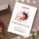 Meddela om födseln av ditt lilla under med våra Aqeeqah-inbjudningskort. Kortet har en tidlös design med en charmig illustration av en rosa blomsterkant, tillsammans med en rosa blomsterfotolista och viktig information som barnets namn, tid, datum, plats för aqiqah och ett personligt foto av ditt barn. Den mjuka och lugnande färgpaletten ger en känsla av frid till meddelandet och gör det till en skattad souvenir för vänner och familj. Lägg helt enkelt till dina evenemangsuppgifter i denna lättanvända mall för att göra den till en unik inbjudan.