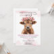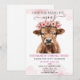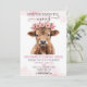 Rosa Blommig Baby Highland Ko Födelsedag Inbjudningar