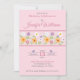 Rosa blommig födelsedagsinbjudan inbjudningar