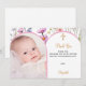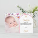 Rosa blommig fotobåge flicka dop tack kort