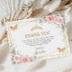 Detta eleganta Quinceañera tackkort har ömtåliga akvarell rosa blommor, mjuk grönska bladverk och rosa fjärilar. Anpassa det enkelt och snabbt med dina detaljer genom att trycka på knappen för anpassning för att ytterligare ändra och formatera stil och placering av texten. Perfekt även för Sweet 16, 18-årsdag, bröllopsfest, baby shower och många fler tillfällen! (c) The Happy Cat Studio