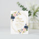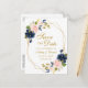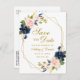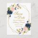 Modern elegant, akvarell rosa rodnad blå blommig, guld geometrisk ram, Spara datum Förlovnings vykort - Guld text