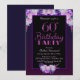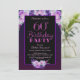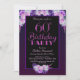 En svart med lila och rosa blommig 60-års inbjudan till fest.