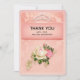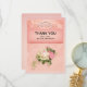 Tackkort med en blommig rosbukett med vita och rosa blommor. En falsk diamanttiara. Bakgrunden är rosa med ett blommigt mönster. Vacker och elegant design.