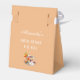 Överraska dina gäster med denna eleganta och personliga Tea Bridal Shower Favor Box, perfekt för en bröllopsdusch-te-fest. Denna charmiga design har en vintage blomstertepotta och tekopp, i kombination med en stilren tre-nivåers kakehållare med utsökt glassade cupcakes, som skapar en scen av tidlös eftermiddagste-elegans. Mot en mjuk persikofärgad bakgrund och med chic typografi och graciös kalligrafi-font, ger denna presentlåda en söt avslutande touch till ditt evenemang. Ett underbart sätt att tacka dina gäster för att de delar glädjen på din speciella dag.