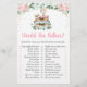 Dessa söta "Would She Rather" spelkort är en rolig aktivitet på bröllopsduschen. Dela bara ut dem under duschen där gästerna kommer att ha kul med att lista ut vilken aktivitet bruden hellre vill göra. Designen har resväskor och ett jordklot med rosa akvarellblommor och falskt guldglitter.