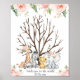 Söt safari-baby djur tumavtryck gästbokssida med vackra blomsterarrangemang, fyra söta djungel-vattenfärg djur och ett brunt naket träd.