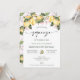 Söt vår stora klämma första födelsedagsinbjudan med en rosa blommig och citronarrangemang högst upp, en modern kalligrafi-rubrik och några textdykningslinjer. Denna citron-tema 1-års inbjudan är idealisk för en citron-tema första födelsedagsfest för en babyflicka.
