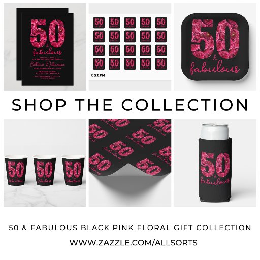 50 and Fabulous Black Pink Floral BirthdayDesignad av Chrissie Lou