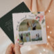 Den här rosa blommigten har ett nyktert bildkort och tre foto-helgdag med en nykterare och elegant som ger klara vattenfärgsillustrationer av rött och rosa poinsettias och delikat vintergrönt. Med chic botaniskt inslag som gräs, holly och vinterbär tillför kortets färgade palett, inklusive dammiga accenter från ro och guld, en boho-beröring till ett modernt estetiskt helgdag. Den här utformningen inför den kommande december blandar ett lätt, vibisk med en blommigt tematisk perfekt inför julsäsongen.