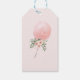 Rosa Blommigt Balloon First Birthday Tack Märkre Presentetikett