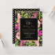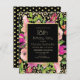 Rosa blommigt och grönt lämnar på guld 18:e födelsedagsfest inbjudan i svart och glitter för kvinnor. Baksidan av detta kort har guld polka dots på en svart bakgrund. Kontakta oss om du behöver hjälp med anpassning eller om du vill begära matchande produkter.
