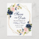 Modern Elegant, Rosa med vattenfärg blå Blommigt, Guld Geometric Ram, Spara Förlovning-vykort