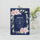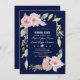 Rosa Blommigt Bloom Navy Blue Rehearsal Middag Inbjudningar