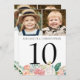 Rosa blommigt-fotosymboler för bordsnummer av bröllop, årsdag eller andra särskilda evenemang där bordsnumret måste vara skyldigt. Ta med olika foton av brudgummen eller ett par genom åren eller deras förlovning bilder för ett underhållande bord-tecken för gäster. Roligt för att ha liknande åldersbilder på samma skylt och olika foton på varje bord som gästmögel. Tryckt på båda sidor för dubbelsidig visning. Den svarta texten färg kan ändras för att koordineras med bröllop eller färgerna för händelsen. ASSISTANS: Om du vill ha hjälp med designändring/anpassning, ändring av färg, överföring av designen till en annan produkt eller om du vill samordna objekt kontaktar du designern INNAN ORDERING via Chattan Zazzle MESSAGE eller e-post på makeitaboutyoustore@gmail.com.