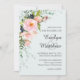 Rosa Blommigt Botaniskt ljusblå Bröllop Inbjudningar
