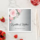 En underbar napkin för silver och rosa personlig bröllop (eller för andra händelser som du kan tänka dig). Utformningen har en bakgrund i silver med en söt rosa ros bouquet längst upp till lämnat.
