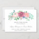 Romantiskt magnetiskt sparande datumen med en blomstervegetation bestående av pastellernas rosa och ro, med närmare uppgifter om bröllop nedan. Blommigten i eleganten är perfekt för ett bröllop i vår.