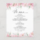 Ta med er underskattad charm och botanisk skönhet till ert mottagande med vår budgeterade Rosa Blommigt Bröllop Menu. Med mjuka toner och delikata blommigt gräns-accenter kompletterar det här platta menykortet perfekt rosa-, trädgårds- eller boho bröllop teman. Designfunktioner: -Lugnande vit bakgrund eller blommigt gräns med konstnärliga blommigtar med vattenfärg -Flat, enkelsidig layout för en ren, modern presentation -Elegant skript och serif typsnitt för enkel läsning och appell för snyggt -Fullständig anpassade med menyval och bröllop-information. Få firande att känna sig lika tankfull och inbjudande som den måltid du har förberett med det här lilla menykortet för rosa blommigt.