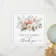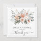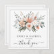 Tack vare kort från elegant rosa grönt blommigt bröllop. Rosa- och grönt-pasteller samt mörk grönt blad- och grönfoder. Anpassa med namn, bröllop-datum och ett personligt meddelande på baksidan av kortet.