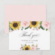Solblommor Rosa Blommigt Bröllop Tack för ditt kort. Romantic Bröllop - tackkort