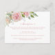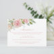 Fintvätt av pastellfärg, rosa, rosor med blek grönt blad tryckt på ett bröllop-förslutningskort med ro rosa text. Det här kortet har en underbar elegant och romantisk förmåga att redigera mall där du kan lägga till information om mottagning och anvisningar. Rosa text är färg hex-kod #E0A4A3. Svarskort för rosa Blommigt Bröllop OSA.