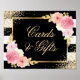 Låt dina gäster veta var de ska lämna sina kort och presenter med den här eleganten vattenfärgsskylten med rosa och elfenben på en svart och vit, strimlad bakgrund med guld konetti. Matchande objekt är tillgängliga.