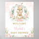 Rosa Blommigt Bunny Rabbit Girl Baby Shower Välkom Poster