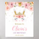 Rosa Blommigt Cute Bunny Rabbit 1:a födelsedag Väl Poster