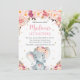 Rosa Blommigt Cute Elephant 1:a födelsedag Inbjudningar