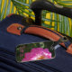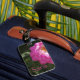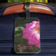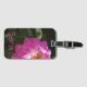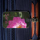 Tappa aldrig ditt bagage med den här lättåtkomliga bagagetaggen som ger en bild av en ljus rosa blomma på en mörk grönt bakgrund.