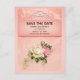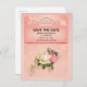 Spara datumvykortet med en blommigt bukett med rosor med vita och rosa blommor. En fingerad diamanttiara. Bakgrund är rosa med ett blommönster. Söt och elegant.