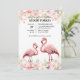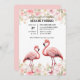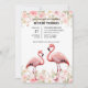 Rosa Blommigt Elegant Flamingo Baby Shower Inbjudningar