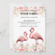 Rosa Blommigt Elegant Flamingo Baby Shower Inbjudningar